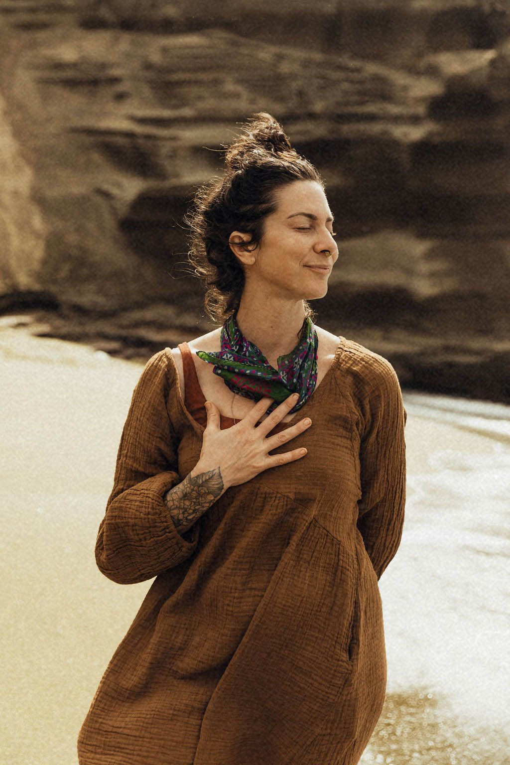 I believe in movement as medicine, story as a bridge, and curiosity as the most profound compass. My work is an integration of the physical and the poetic – where yoga and somatics meet philosophy, neuroscience, and the mythic to help us remember who we are beneath all the layers. These offerings are an invitation to question, to soften, to expand.